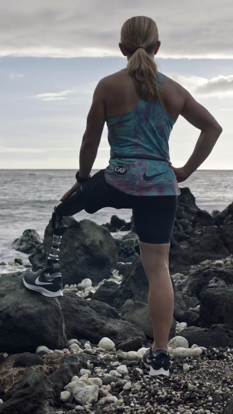 Understanding Sarah’s biomechanics in relation to fit and her prosthetic leg was critical to designing a uniform complimentary of her physique and that was easily donned during her race transitions.